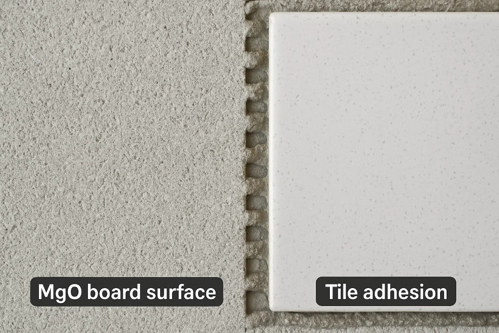 Cả hai bảng cung cấp bề mặt tuyệt vời cho độ bám dính gạch. Sự khác biệt chính nằm trong phương pháp. Bảng tự nhiên của bảng xi măng cho phép vữa vữa mỏng liên kết một cách cơ học khi nó chữa khỏi bề mặt. Một số nhà sản xuất khuyên bạn nên mồi bề mặt để giảm độ hấp thụ và ngăn chặn bộ mỏng bị khô quá nhanh, điều này có thể làm suy yếu liên kết. MGO Board, bề mặt dày đặc, mịn màng cung cấp một liên kết hóa học mạnh mẽ với bộ mỏng, đảm bảo rằng gạch bám dính an toàn và kéo dài trong nhiều năm.