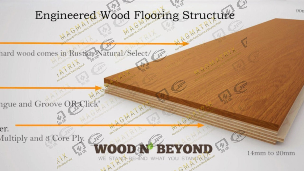 Ưu điểm lớn nhất của Wood Wood nằm ở khả năng chống ẩm. Cấu trúc được đặt chéo giúp ngăn ngừa cong vênh hoặc tách khi độ ẩm thay đổi. Chất lượng này cho phép lắp đặt ở những nơi mà gỗ cứng rắn sẽ không hoạt động tốt, chẳng hạn như tầng hầm và tấm bê tông.