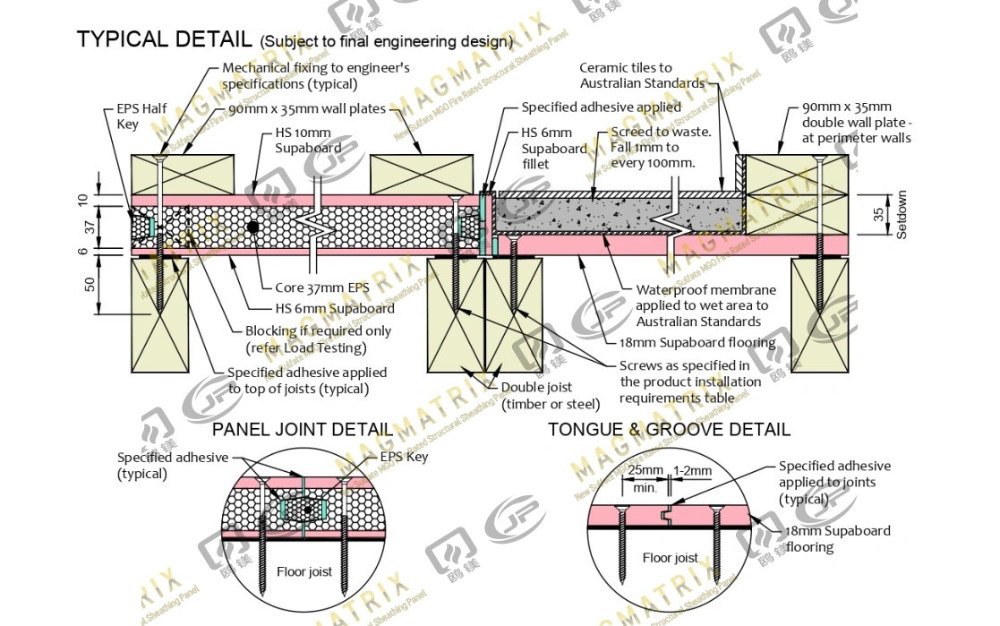 | Tấm tàu con MGO | Oxit magiê với khoáng chất không hữu cơ, được gia cố bằng lưới sợi thủy tinh | Độ dày 3/4 " | Tuyệt vời - Chỉ hấp thụ độ ẩm bề mặt 0,34% | Chống lửa lên tới 1.472 ° F, tính toàn vẹn cấu trúc cao | Hấp thụ độ ẩm dễ dàng, chi phí nhiều hơn, ốc vít có thể ăn mòn | Phòng tắm, nhà bếp, tầng hầm, nhà ở nhiều gia đình |